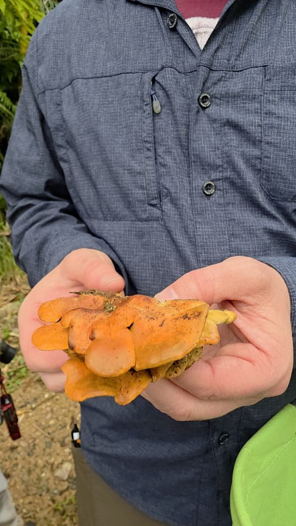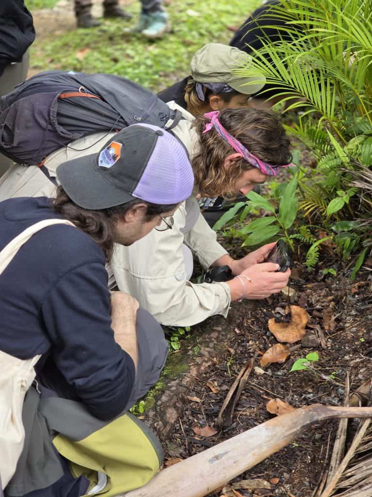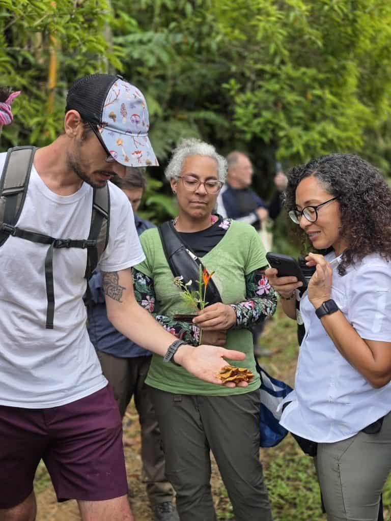 Participants explored mature tabonuco forest, regeneration zones, and enrichment areas, documenting cup fungi, polypores, mycorrhizal partners, jelly fungi, and many lesser-known species. The team emphasized sustainable practices, careful observation, and respect for the forest floor. Their combined expertise helped participants see fungi not only as identifiable species but also as active contributors to soil creation, nutrient cycling, and long-term forest recovery.