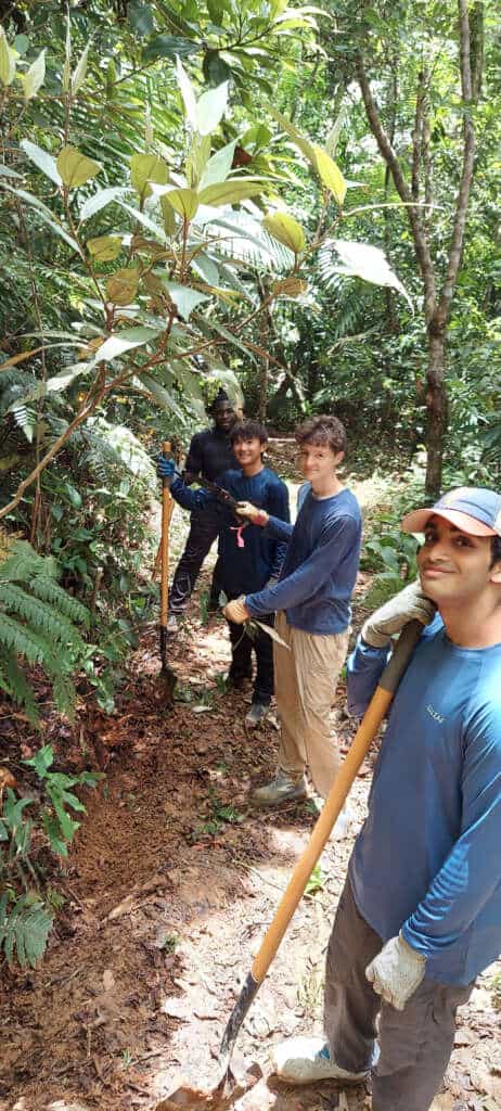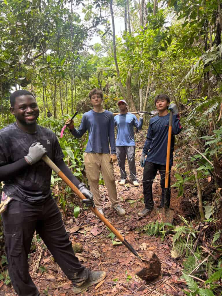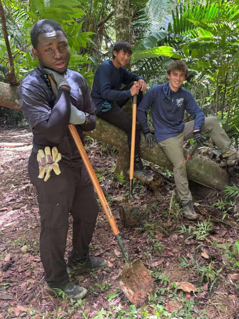 Despite the rain—or perhaps because of it—the experience was deeply connective. The students lived the rhythms of the rainforest, learned what ecological restoration looks like on the ground, and gained insight into what it means to work collectively in a living system that does not bend to convenience.