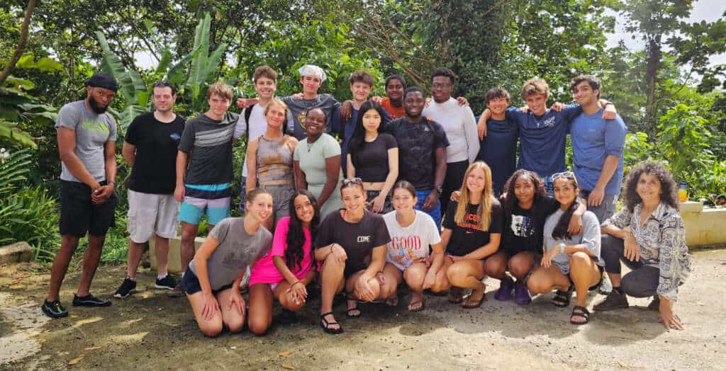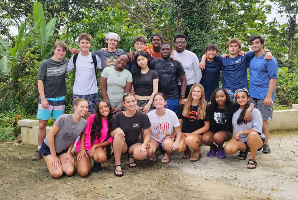 Dedham High School students came to Las Casas de la Selva for a four-day immersive stay. They arrived during a very rainy time and were quickly introduced to the reality of tropical fieldwork: heavy rains, slick trails, and humid days.