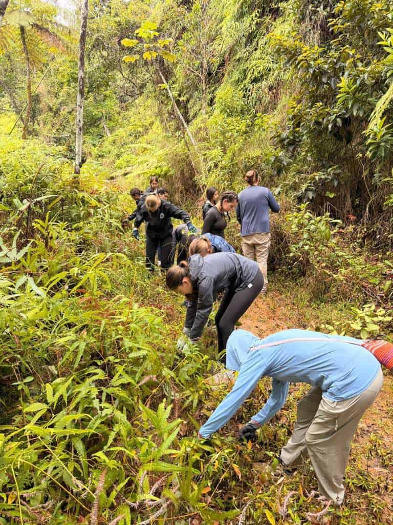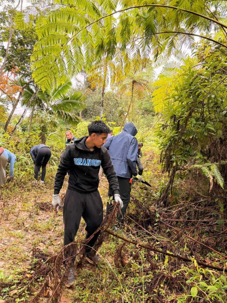 The work demanded attention and effort. Tools in hand, the group moved steadily along the road, learning quickly that in the rainforest, maintenance is not a one-time task. It is ongoing, physical, and necessary for everything else we do here to function.