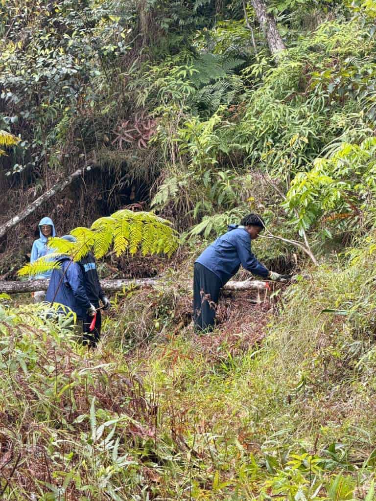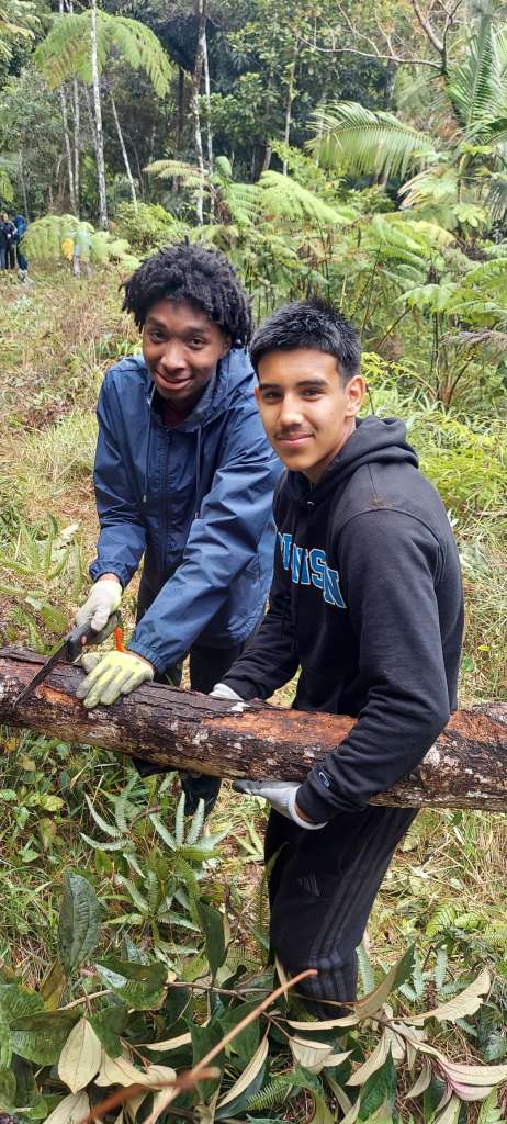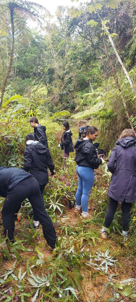 They joined us on the forest road, where maintenance is constant and essential. Under the guidance of Jon Warwick, who led the crew with clarity and pace, the students got straight into it. Branches were cut back, ferns were cleared from the road edges, and bamboo was pruned where it had begun to close in. The goal was simple: keep the road open, safe, and functional in a place where growth never stops.